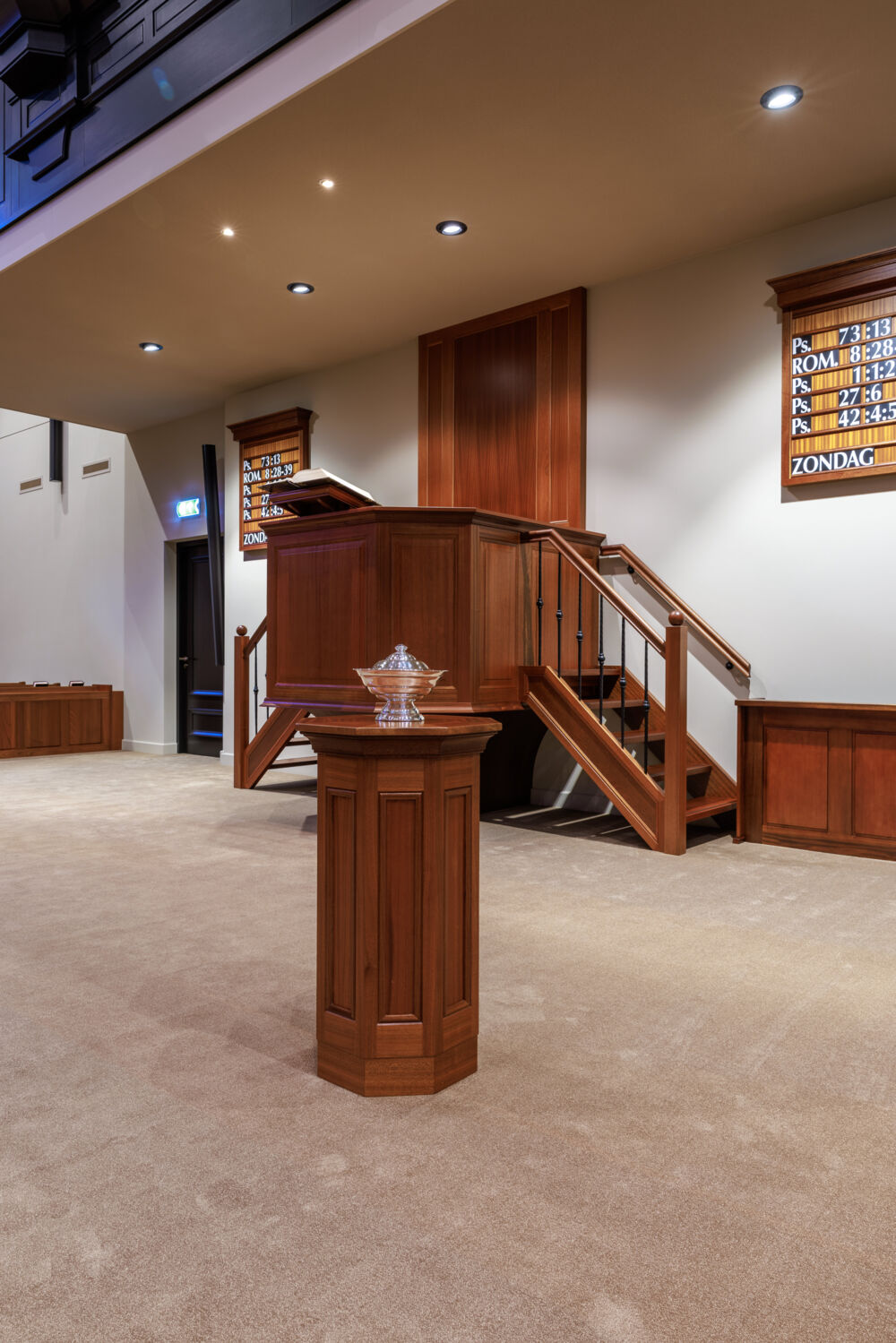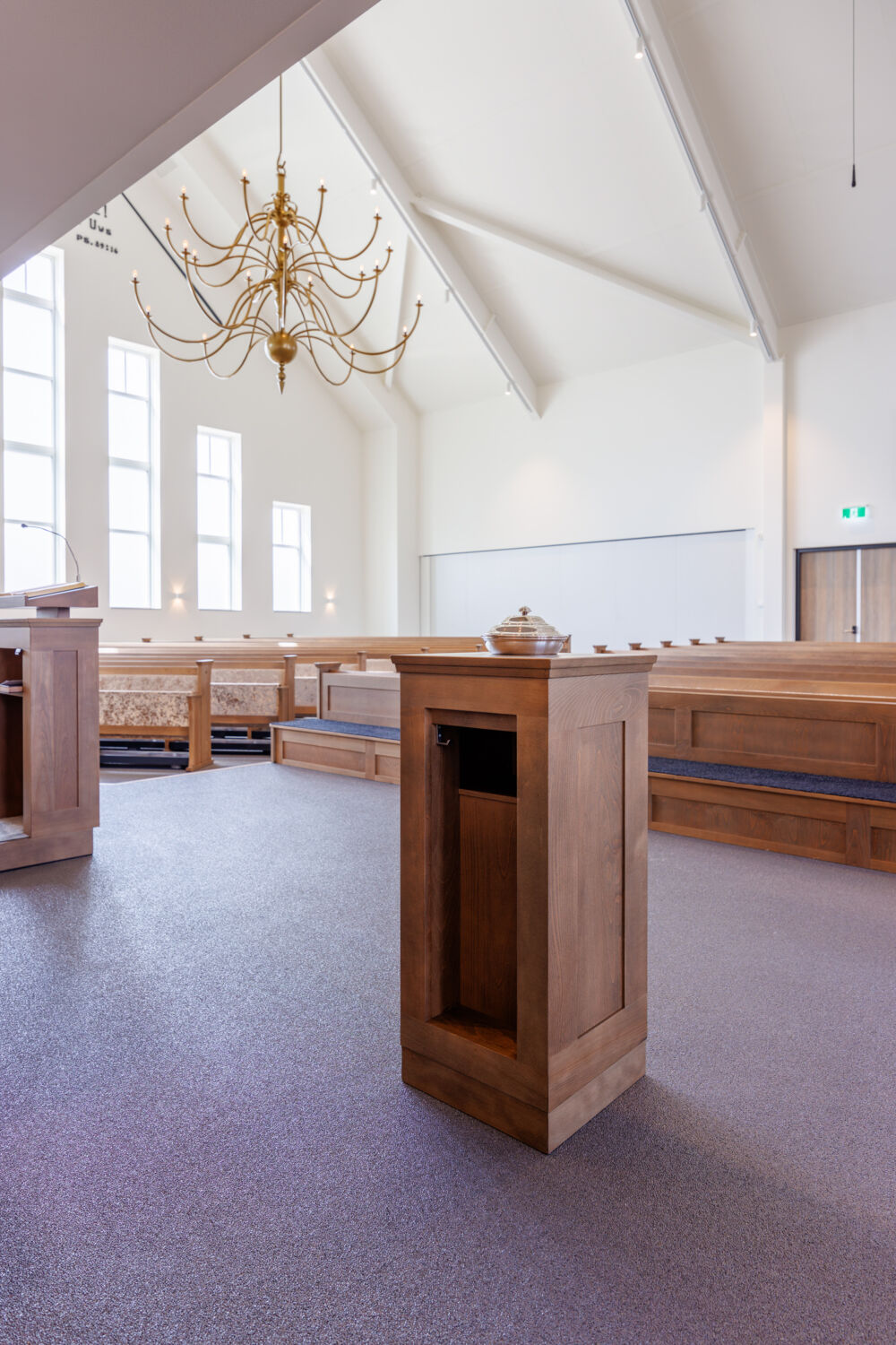 Een doopvont is een belangrijk onderdeel van de eredienst en staat vaak in het zicht. We streven ernaar dat het doopvont makkelijk te verplaatsen is wanneer nodig. In overleg kan het doopvont voorzien worden van constructie zodat het makkelijk verplaatsbaar is.
