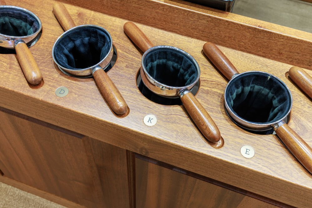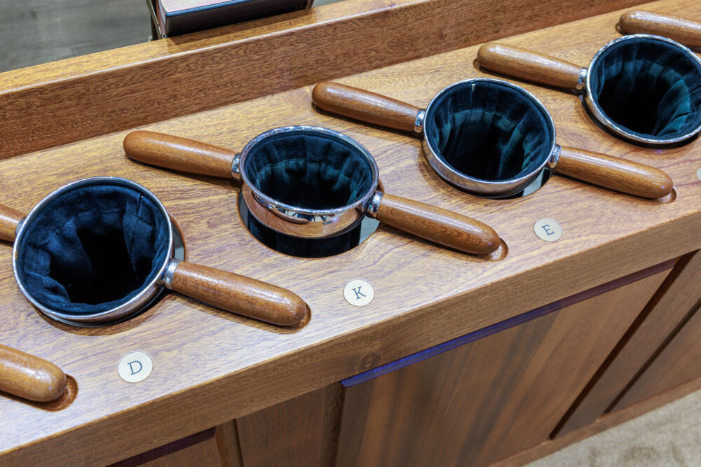 Om onze collectie compleet te maken is het ook mogelijk om bij ons collectezakken te bestellen. De standaard collectezak is gemaakt van zwart fluweel. Andere kleuren (bijv. paars, donkergrijs en groen) zijn ook mogelijk op aanvraag.